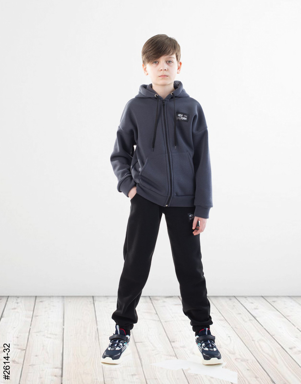 Спортивний костюм для хлопчиків з тринитки на флісі. Верх — кофта на блискавці. Низ — яорні джоггери з комфортною широкою резинкою в поясі. Гарне лекало, стильна повномірна модель.